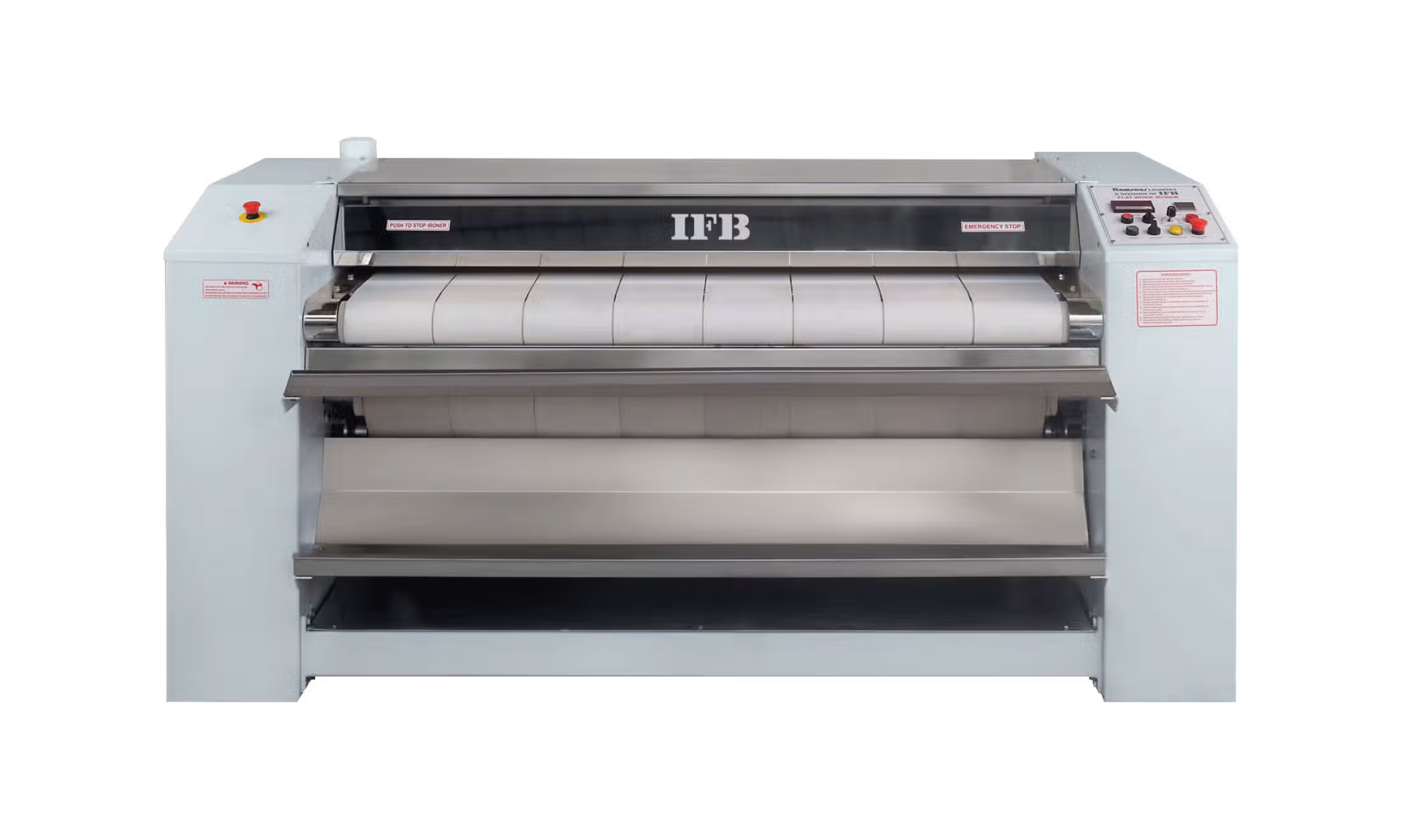 The IFB Flat Work Ironer is a reliable and high-performance calendaring machine ideal for hotels, hospitals, and commercial laundries. It features electric heating, variable speed control, and automatic roller adjustment for consistent and high-quality ironing results.